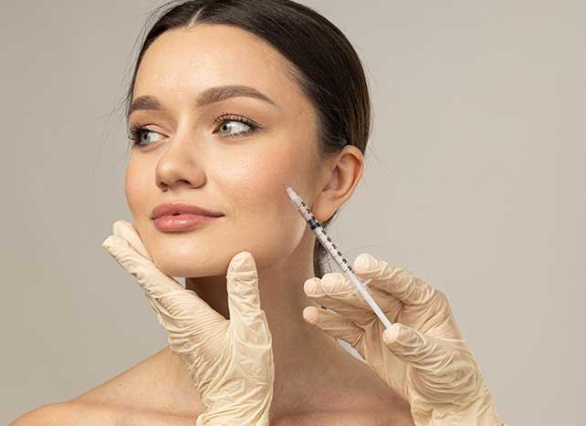 Aplicação de toxina botulínica para suavizar rugas e linhas de expressão, e preenchimentos com ácido hialurônico para dar volume e contorno ao rosto.